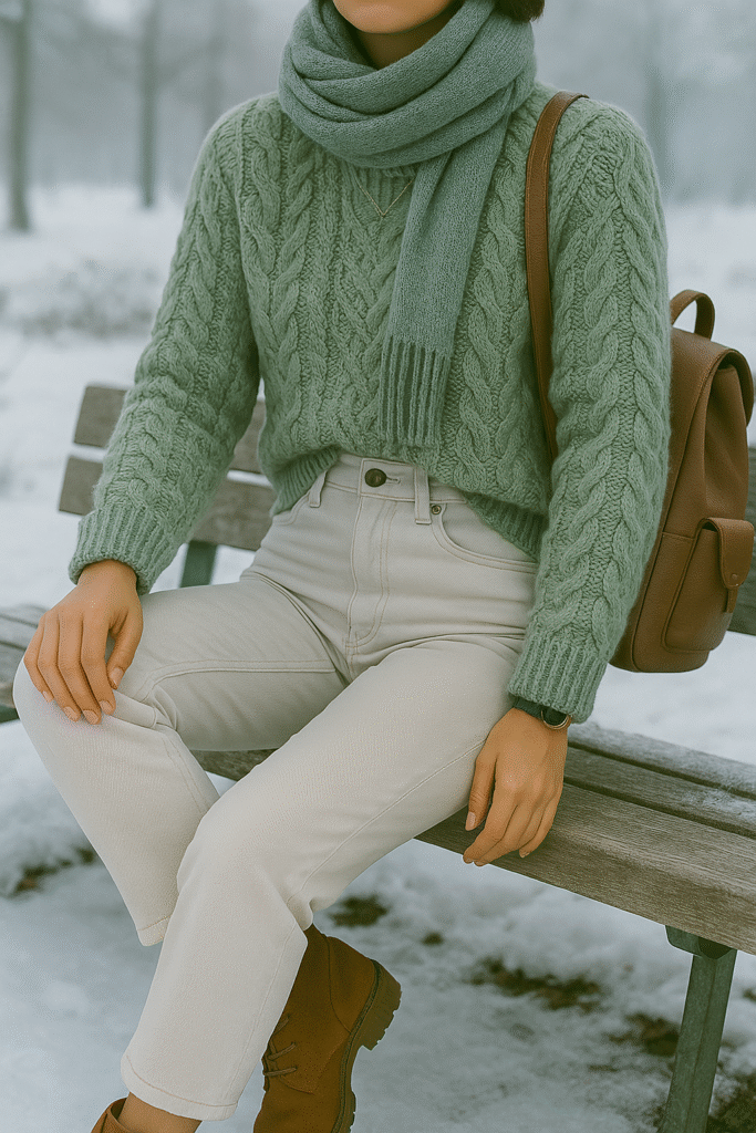 Sage green is this muted, earthy green that’s basically the chillest color of 2025. It’s not as loud as emerald but still gives your outfit a little something special. I’ve been loving it in a flowy blouse I got recently—paired it with high-waisted beige trousers and some tan loafers, and I felt so put-together without trying too hard. It also looks amazing in cozy knits, like a sage green sweater with white jeans for a fresh winter look. Pro tip: if you’re nervous about wearing it head-to-toe, start with a sage green scarf or bag to test the waters.